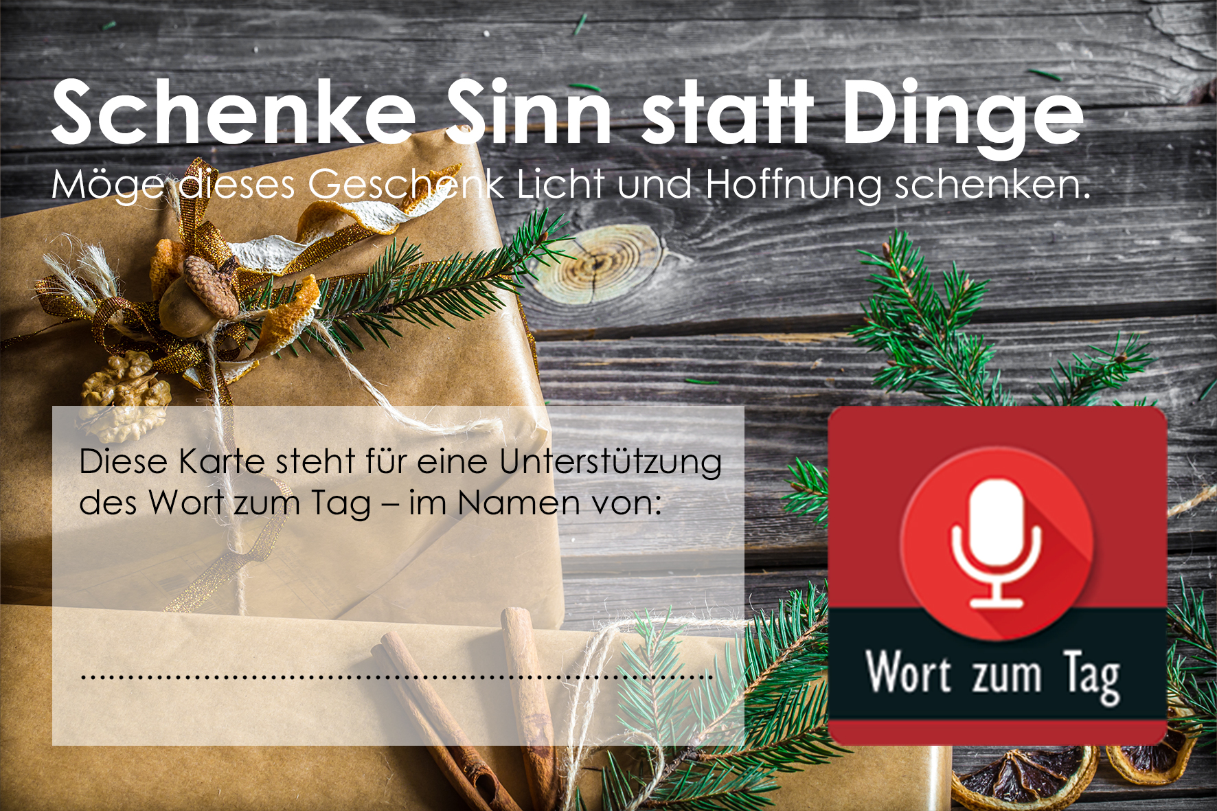 Unterstütze das Wort zum Tag als Weihnachtsgeschenk